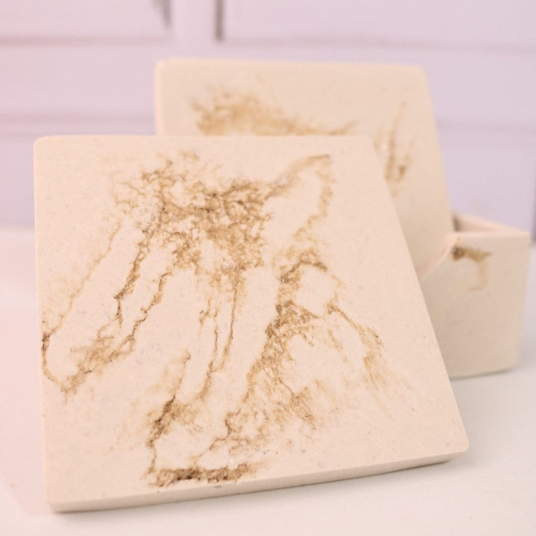 Los posa vasos tienen pies de fieltro para proteger los muebles. La base está hecha de resina blanda para mayor durabilidad. Los posa vasos están sellados para resistir las manchas. Muchos colores disponibles. ¡Hermoso y útil! Si necesitas más de cinco, cada posa vaso cuesta 100 pesos adicionales.